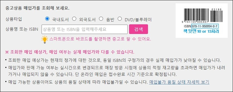 중고책 매입가 확인하기