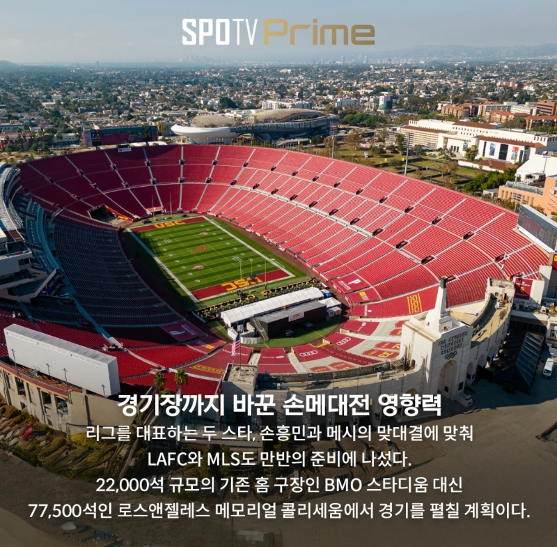 두 슈퍼스타의 맞대결이 확정되자마자 폭발적인 티켓 수요가 발생하며 경기장이 변경되는 이례적인 상황이 연출되었습니다. 애초 LAFC의 홈구장인 22,000석 규모의 BMO 스타디움에서 열릴 예정이었으나, 팬들의 엄청난 관심을 수용하기 위해 77,500석 규모인 로스앤젤레스 메모리얼 콜리세움으로 장소를 옮겼습니다. 이는 이번 손흥민 메시 경기 시간에 쏠린 현지의 뜨거운 열기를 방증합니다.