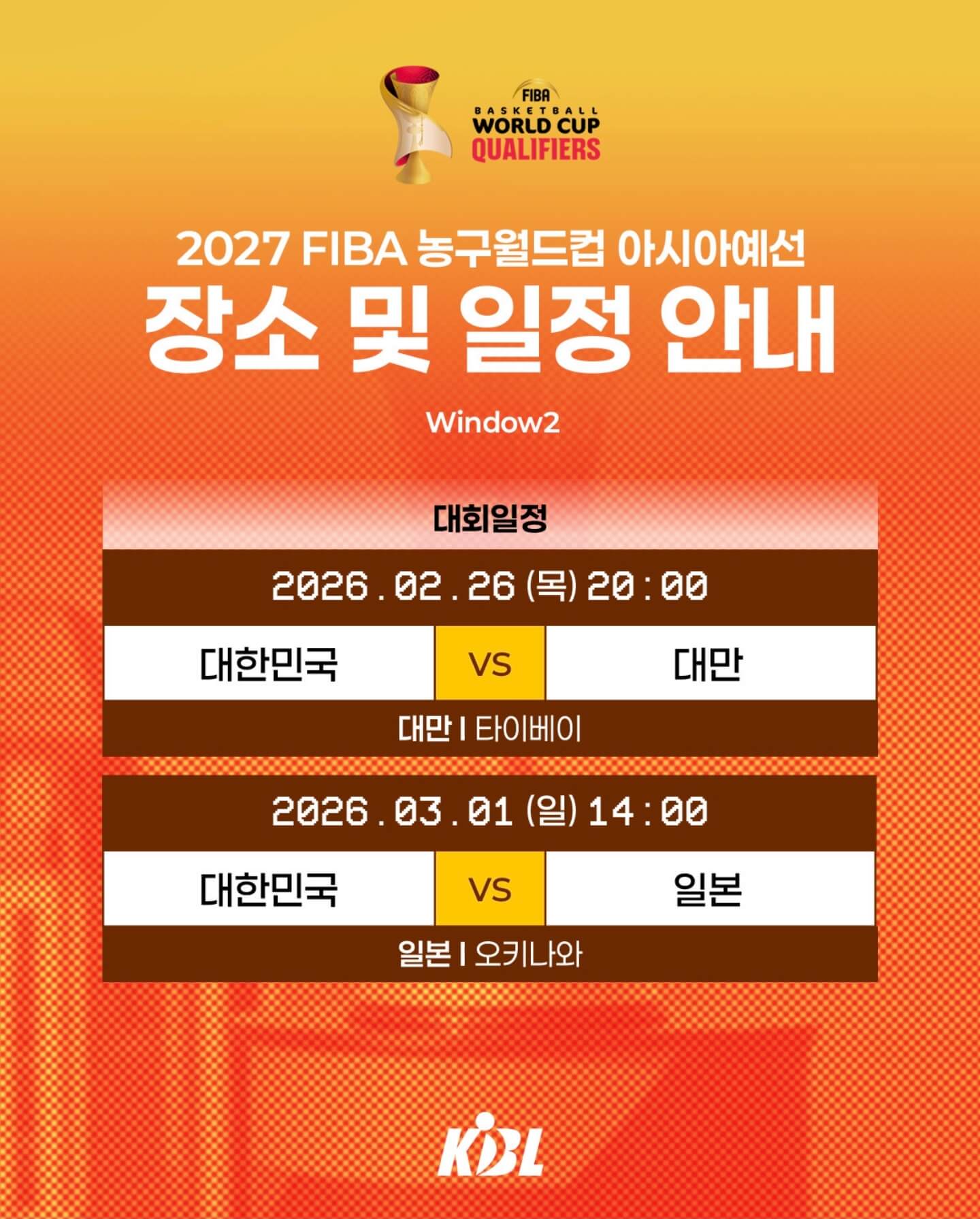 2027 FIBA 농구월드컵 아시아 예선이 시작됐습니다. 한국은 윈도우1에서 중국을 2연승으로 꺾고, 2026년 2월 대만·일본과 원정경기를 치릅니다. 일정과 명단을 확인하세요.