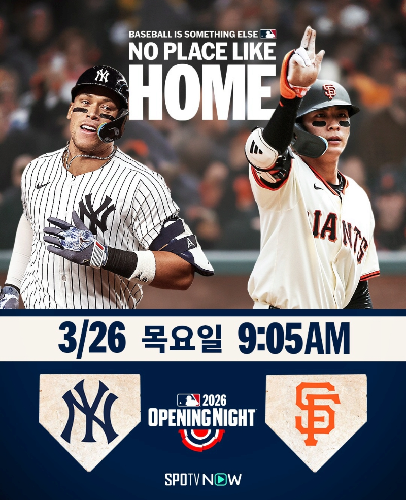 공식 오프닝 나이트 경기는 한국 시간 기준 3월 26일 오전 9시 5분에 오라클파크에서 펼쳐집니다. 샌프란시스코 자이언츠와 뉴욕 양키스의 이 맞대결은 2026 MLB 개막전 중계 역사상 처음으로 넷플릭스 플랫폼을 통해 전 세계에 실시간으로 송출됩니다. 나머지 28개 구단의 전체 개막전은 하루 뒤인 3월 27일에 일제히 진행하며 본격적인 정규 시즌의 막을 올릴 예정입니다.